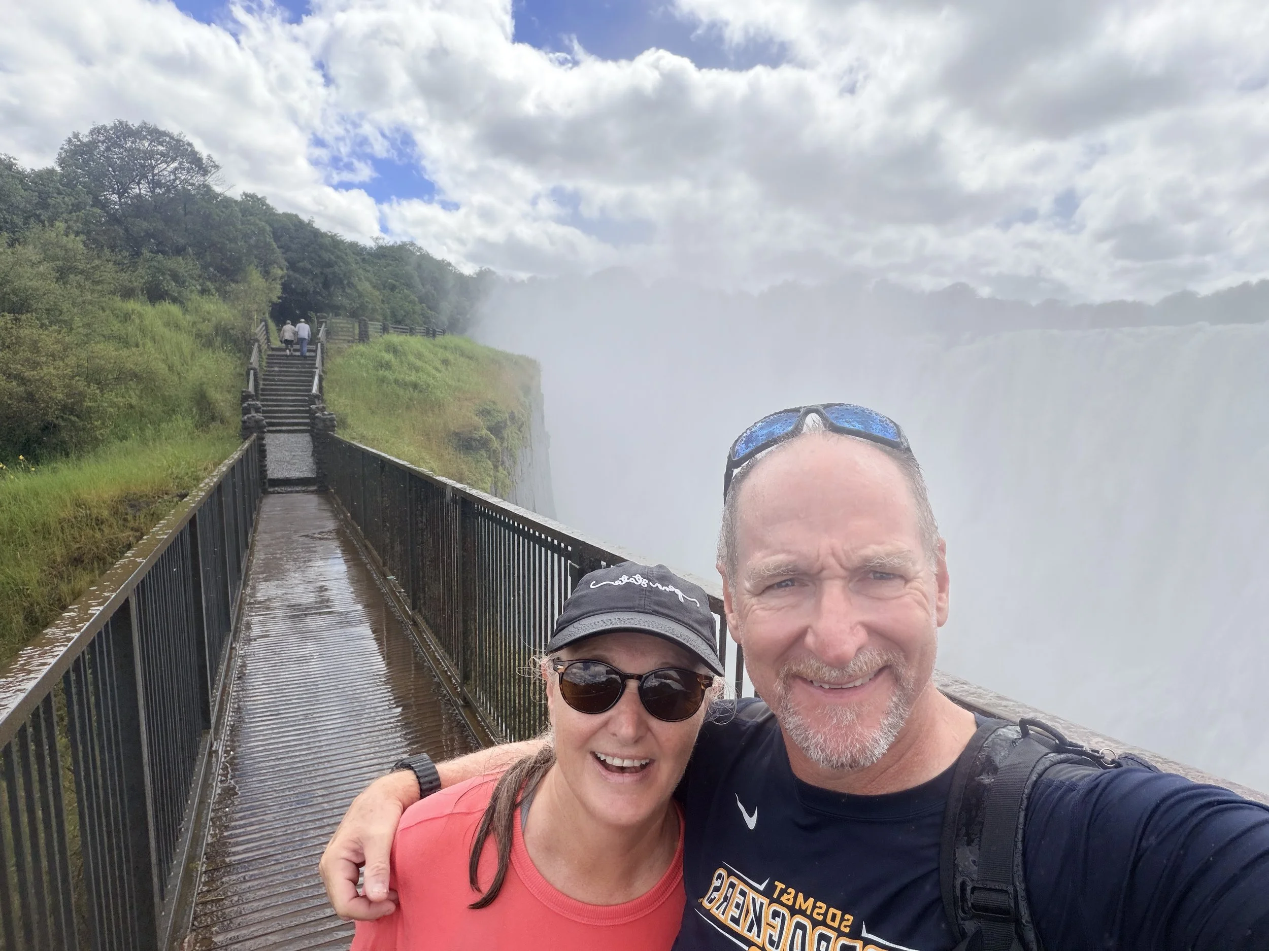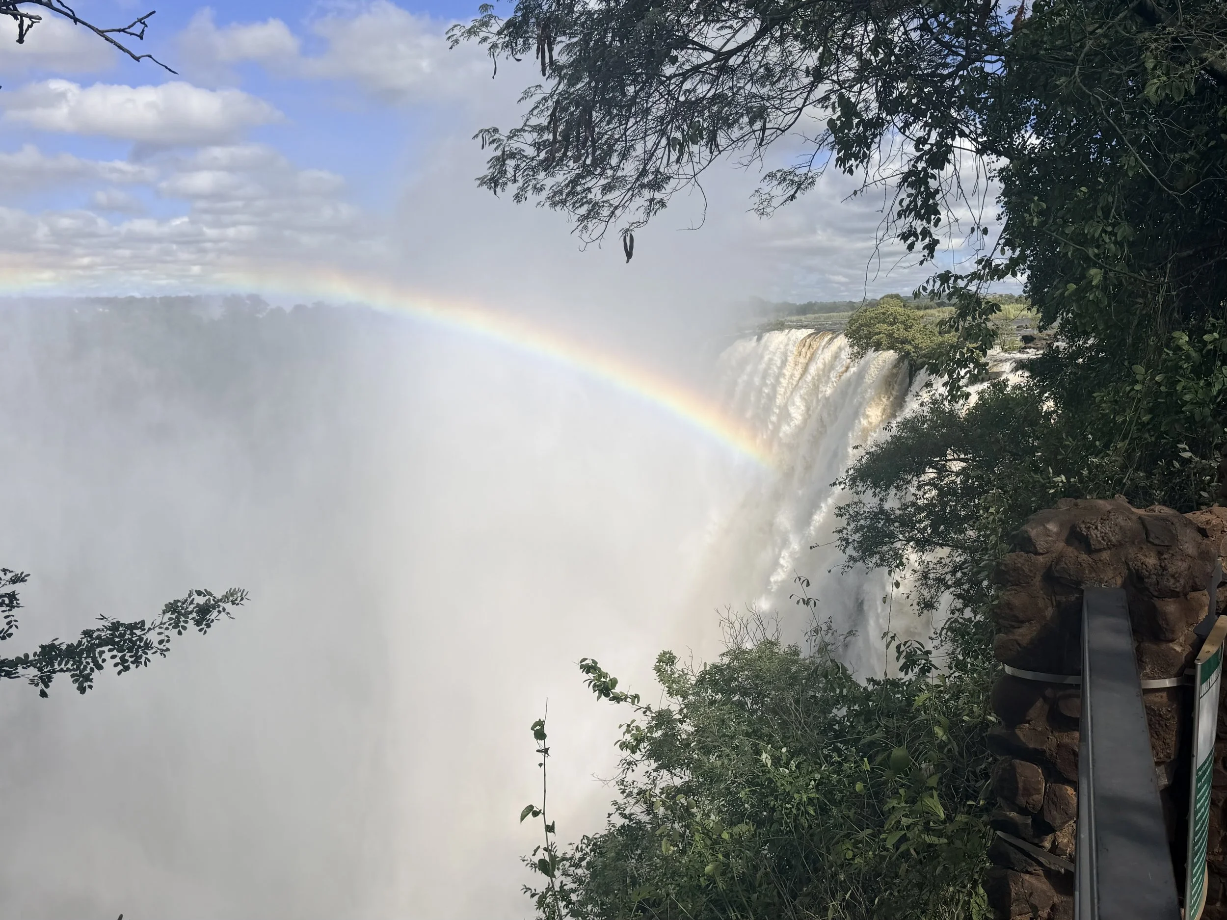 Getting soaked was absolutely worth it. The falls are truly a sight to behold—the sun casting rainbows through the mist, the thunderous roar of water, and plumes of spray rising high from the gorge. Unlike most waterfalls, you can’t take it all in at once. In many places, you only catch glimpses of the top, as the sheer volume of water creates a dense curtain of vapor. The narrow gorge below funnels that force upward, sending mist soaring into the air. Locally, Victoria Falls is known as Mosi-oa-Tunya -“The Smoke That Thunders,” and after visiting you can understand why as the mist and roar can be seen and hear from a distance.