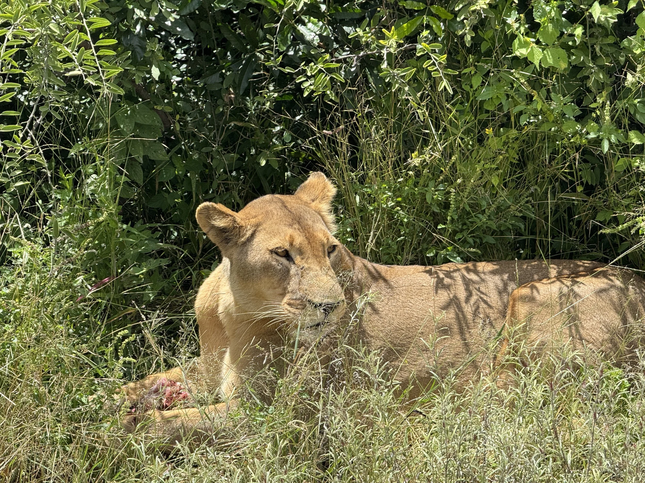 lion enjoying a meal