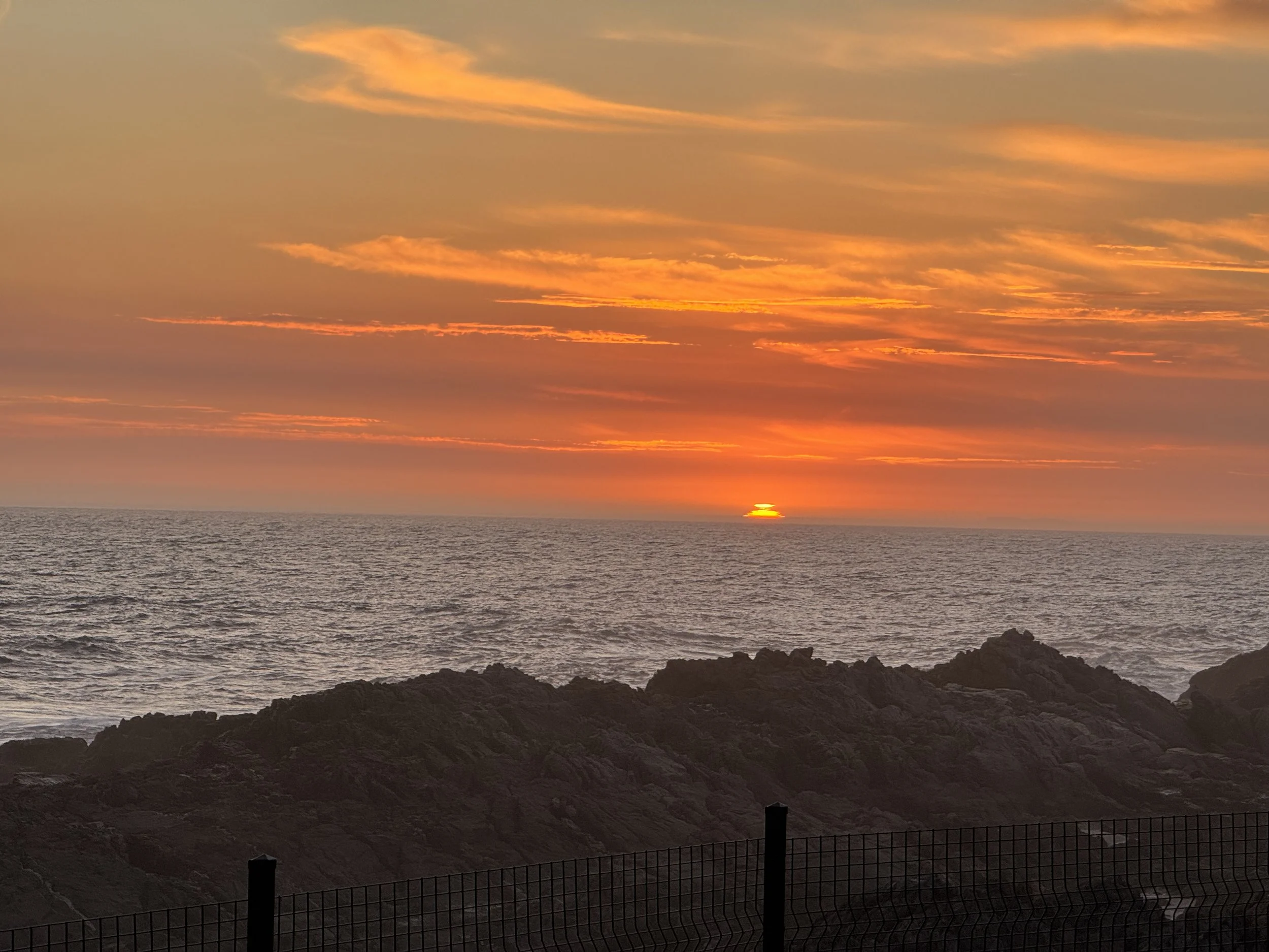Tuesday morning greeted us with another spectacular show — this time, the sunrise. The horizon slowly shifted from deep indigo to soft shades of orange and gold, as the first light spilled across the ocean and lit up the rugged coastline.