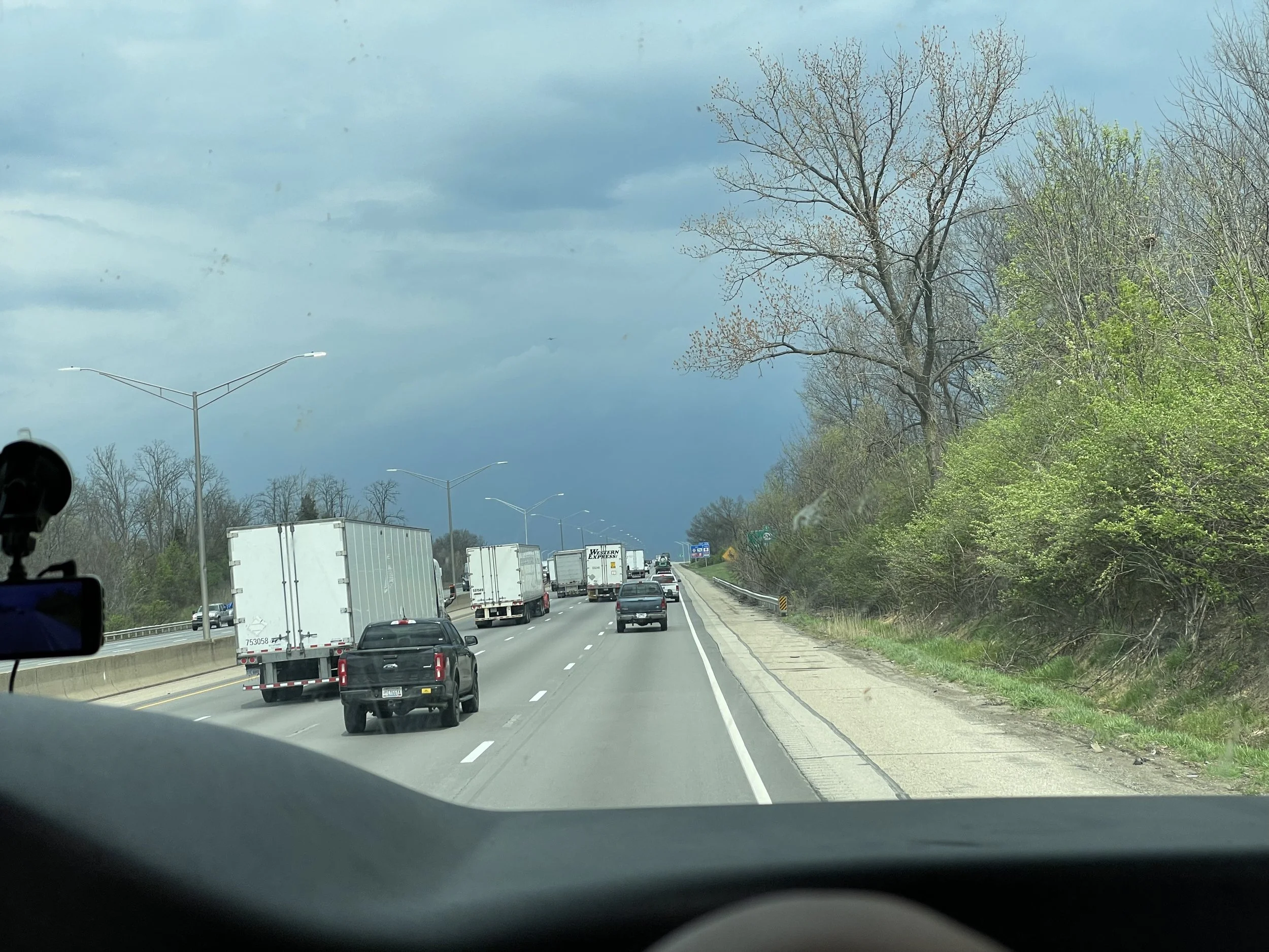 On our recent drive back to Pittsburgh, we spent the night at a Cracker Barrel in TN. The nice thing about choosing Cracker Barrel is it’s a great place to go for a good meal, and we usually can pick up some yummy snacks in the store too. There are a few drawbacks to the parking lot vs a campground, the first being no hookups. Thankfully with a full tank of fresh water we are able to go a few days washing dishes, flushing the toilet, and even taking a quick shower. For power, we do have a battery and solar panels on the roof. You just need to be carefully about not having too many things drawing current at once, like only run one AC, no microwave, or hairdryer. (all learned thru trial and error). Secondly, you can’t always put even one slide out, which makes it tight quarters for those nights.
